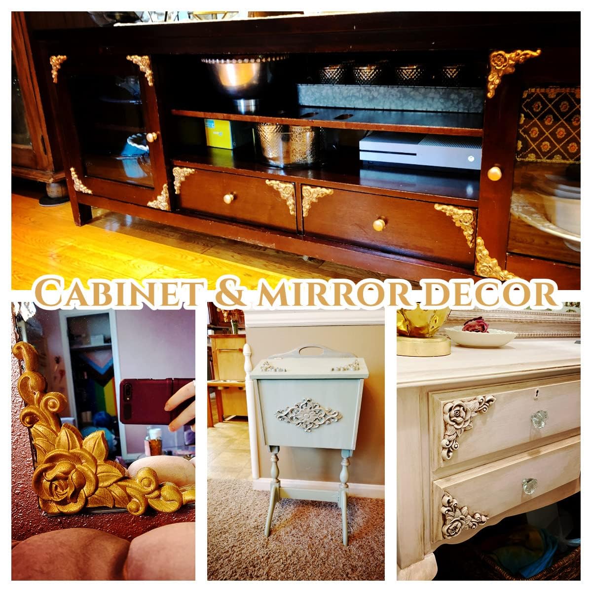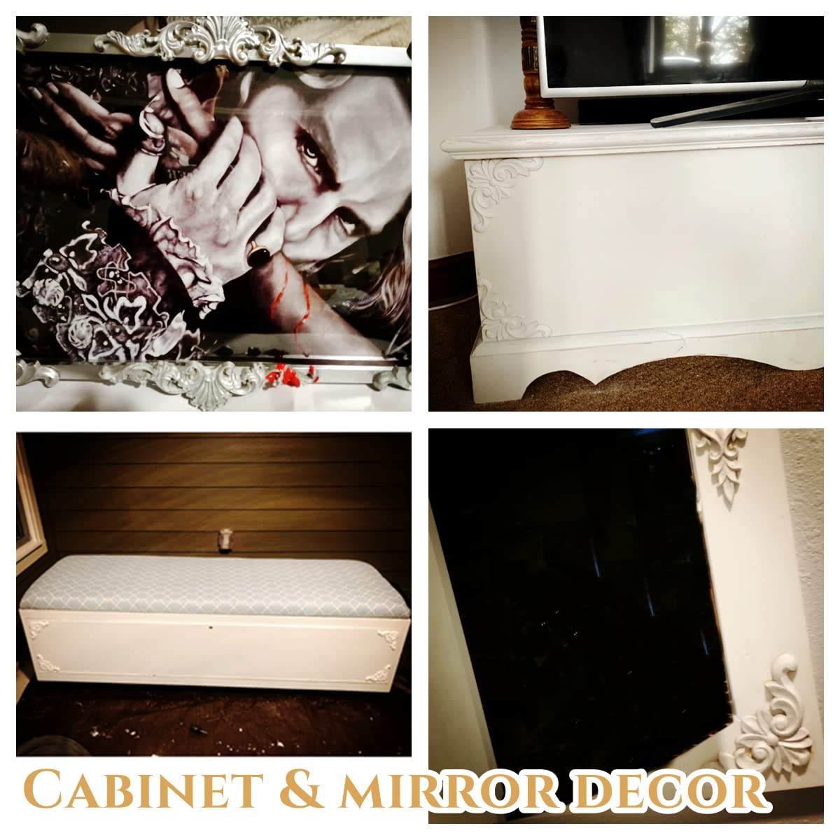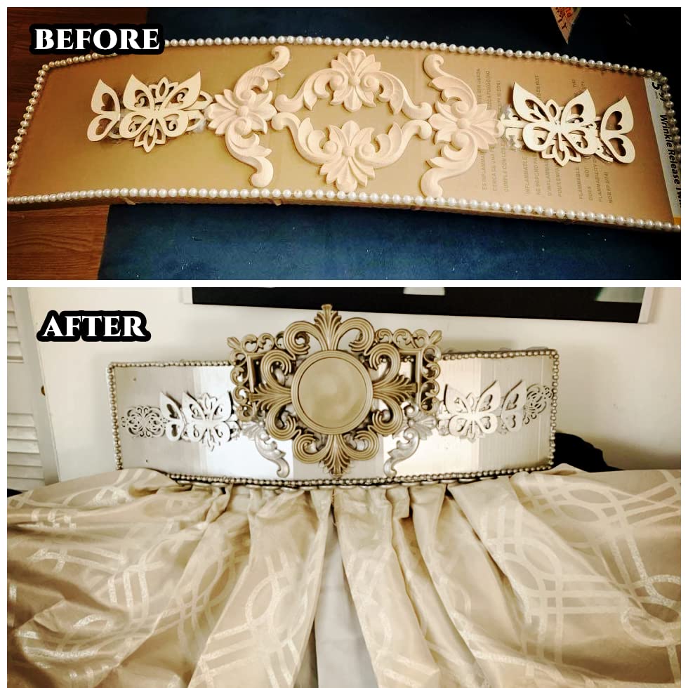 🌸【 𝗖𝗥𝗘𝗔𝗧𝗜𝗩𝗘 𝗗𝗜𝗬 】: The wooden carved corners are wooden color, so they dye easily and you could paint them with your favorite color of paint. They can be attached to cabinets, windows, mirrors, also can be used as decorative doors. Create a beautiful and elegant european style for your home