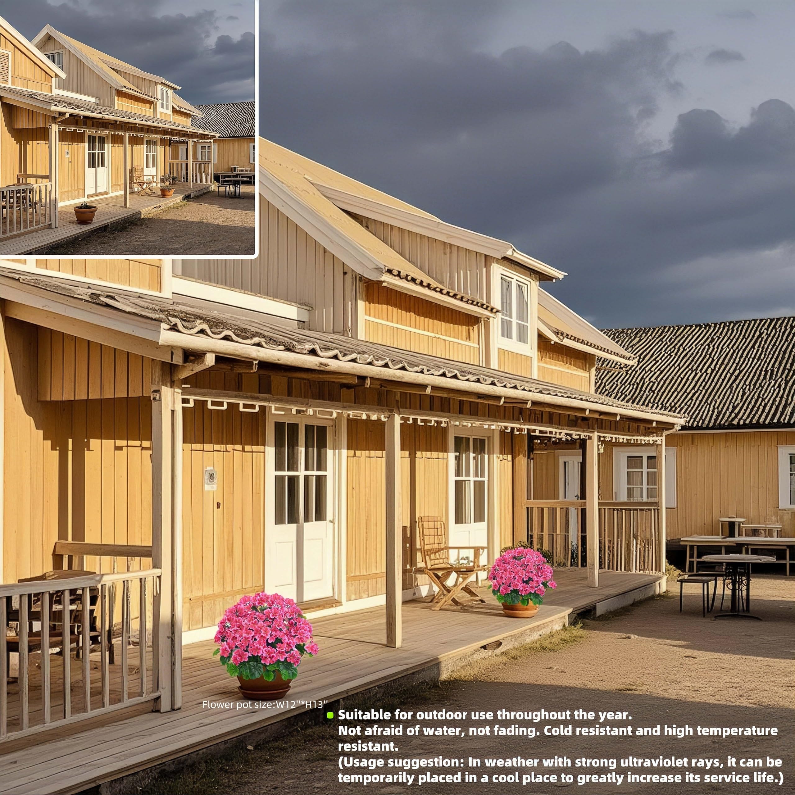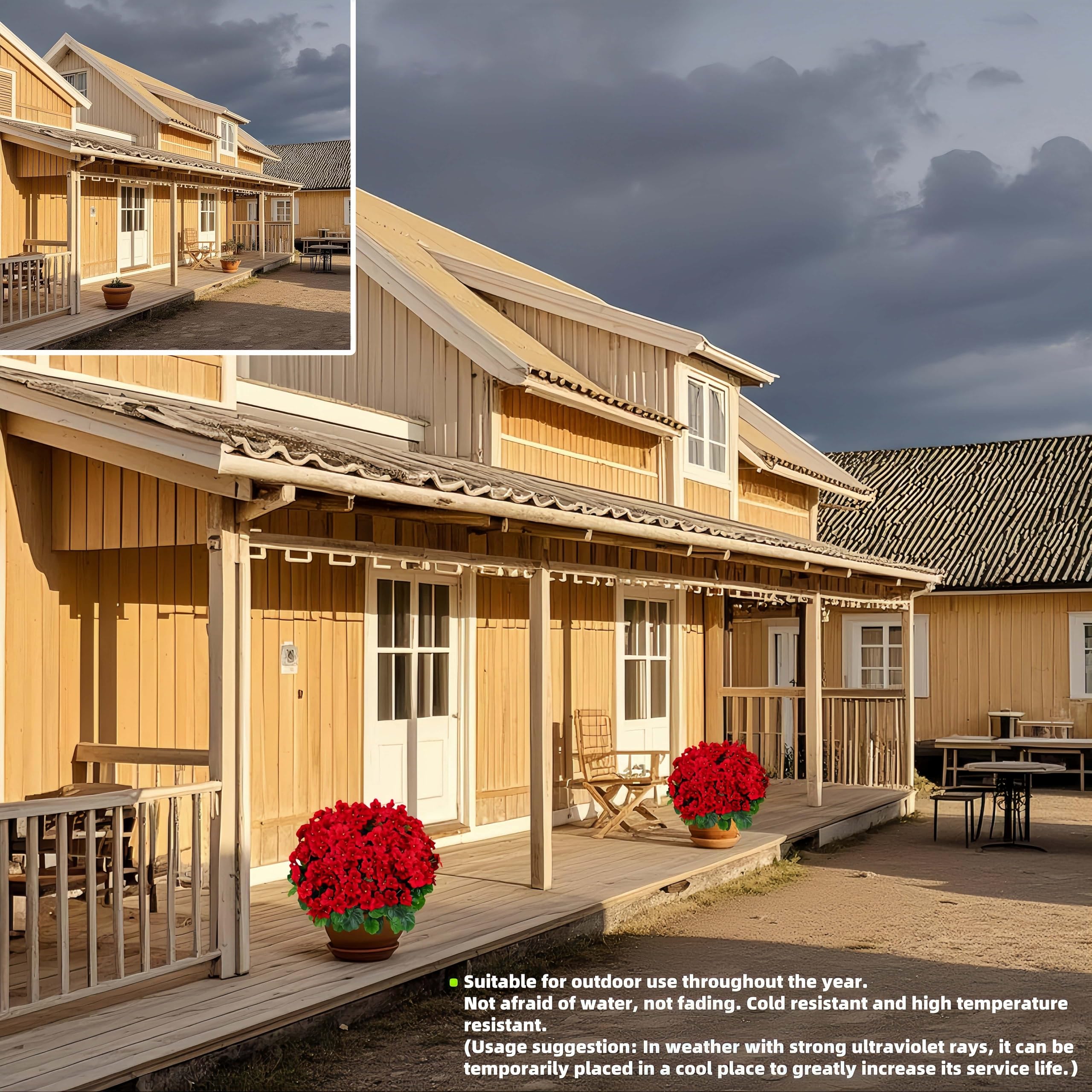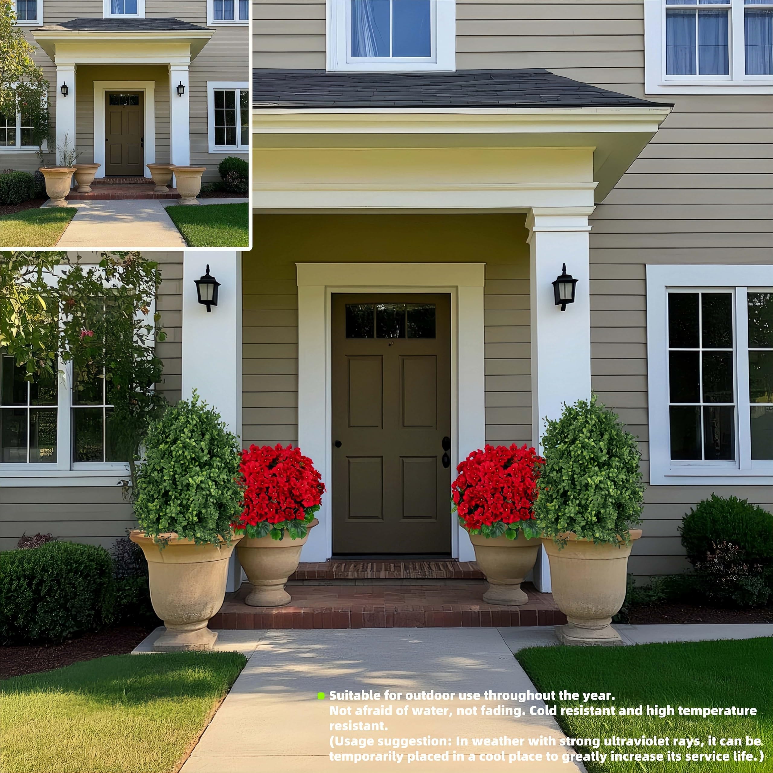 【Premium Materials】Our genuine artificial plants outdoor are made of high-quality silk and eco-friendly plastic, offering an ultra-realistic appearance. Each petal is meticulously designed to create a lifelike look. These UV resistant artificial outdoor plants are waterproof, fade-resistant, odorless, and maintenance-free, ensuring lasting beauty.