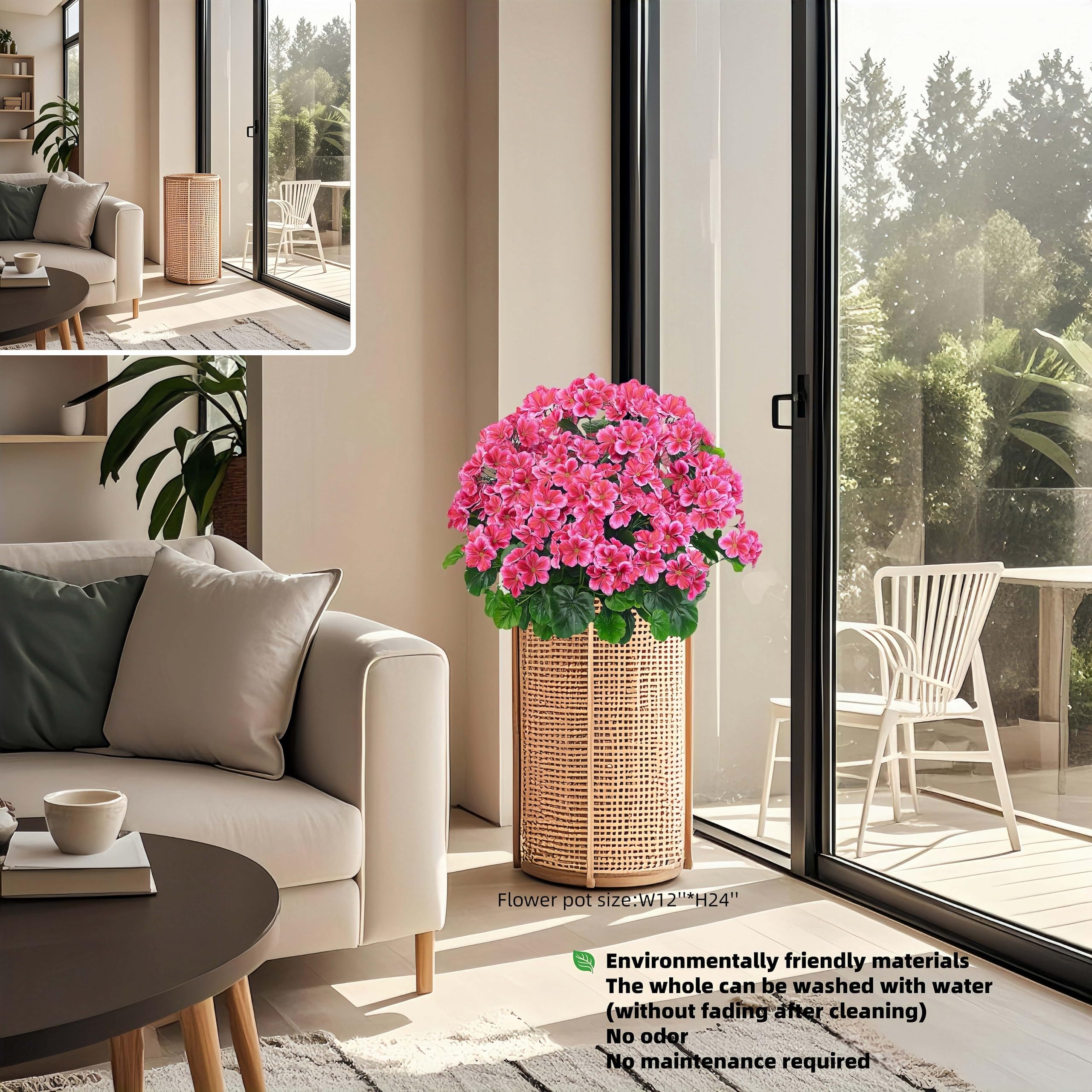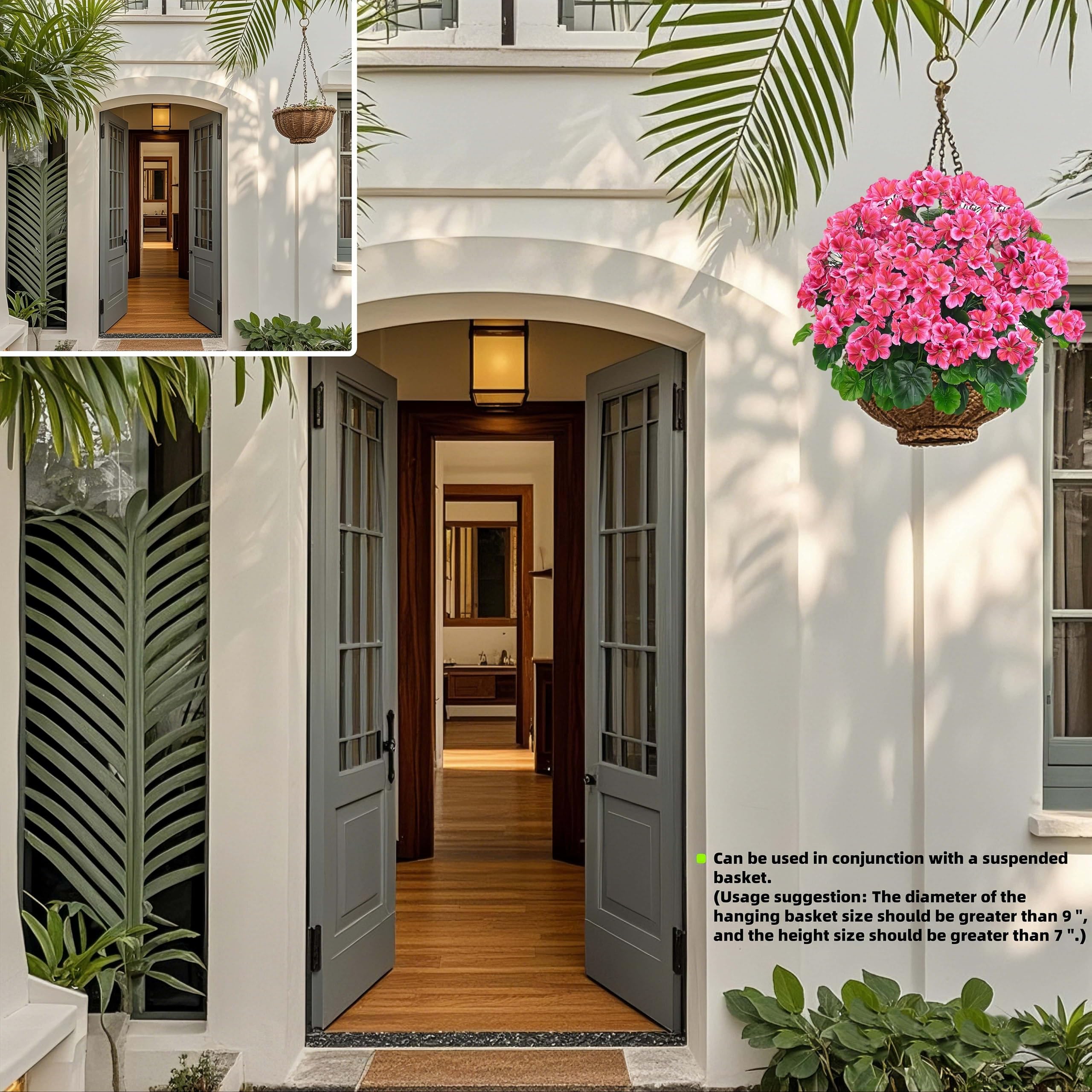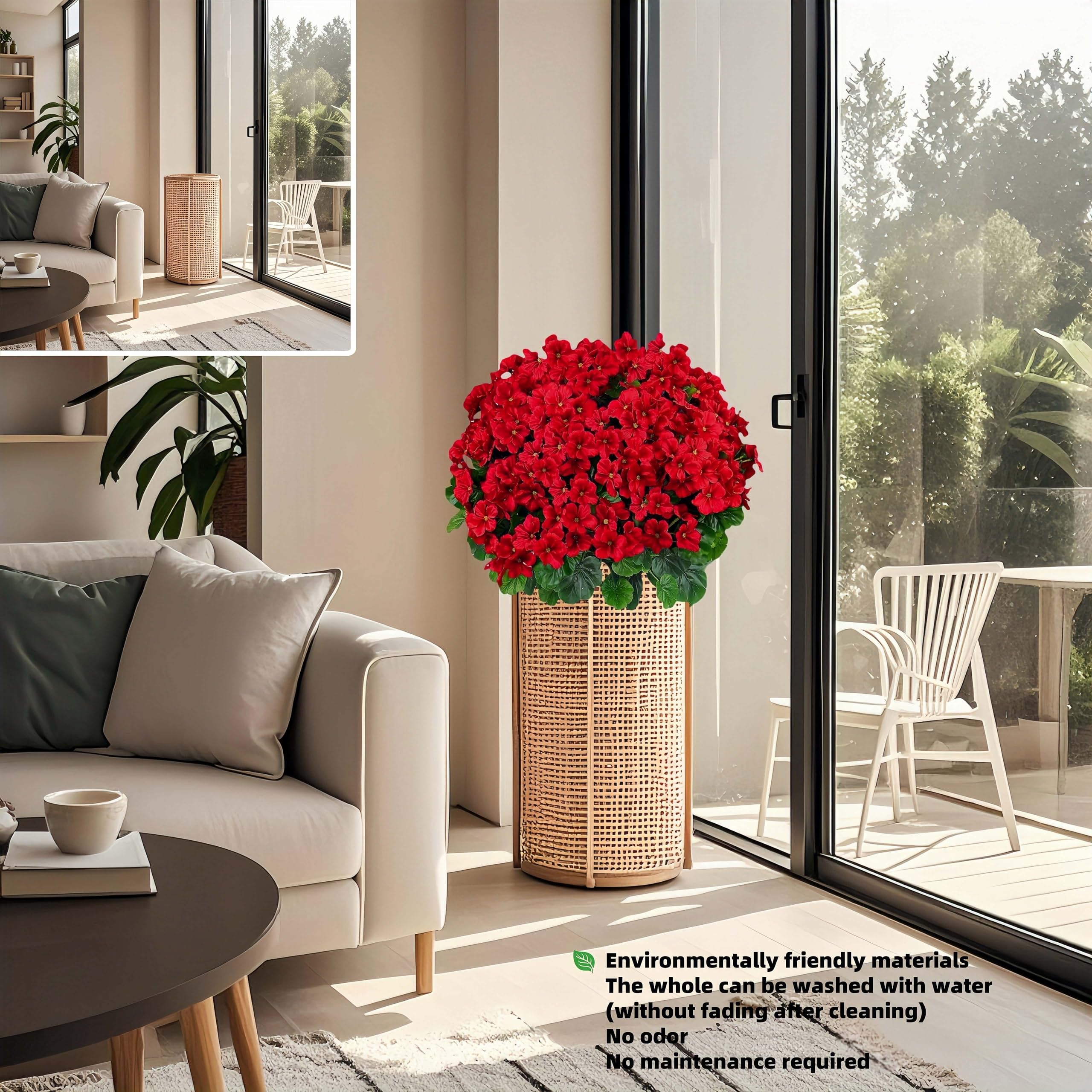 Instant curb appeal—no green thumb needed! This 21-inch pre-potted geranium topiary arrives bursting with UV-safe blooms; just set it by the door, on the patio, or atop the mantel for year-round color that never wilts or needs watering. 🏡🌺