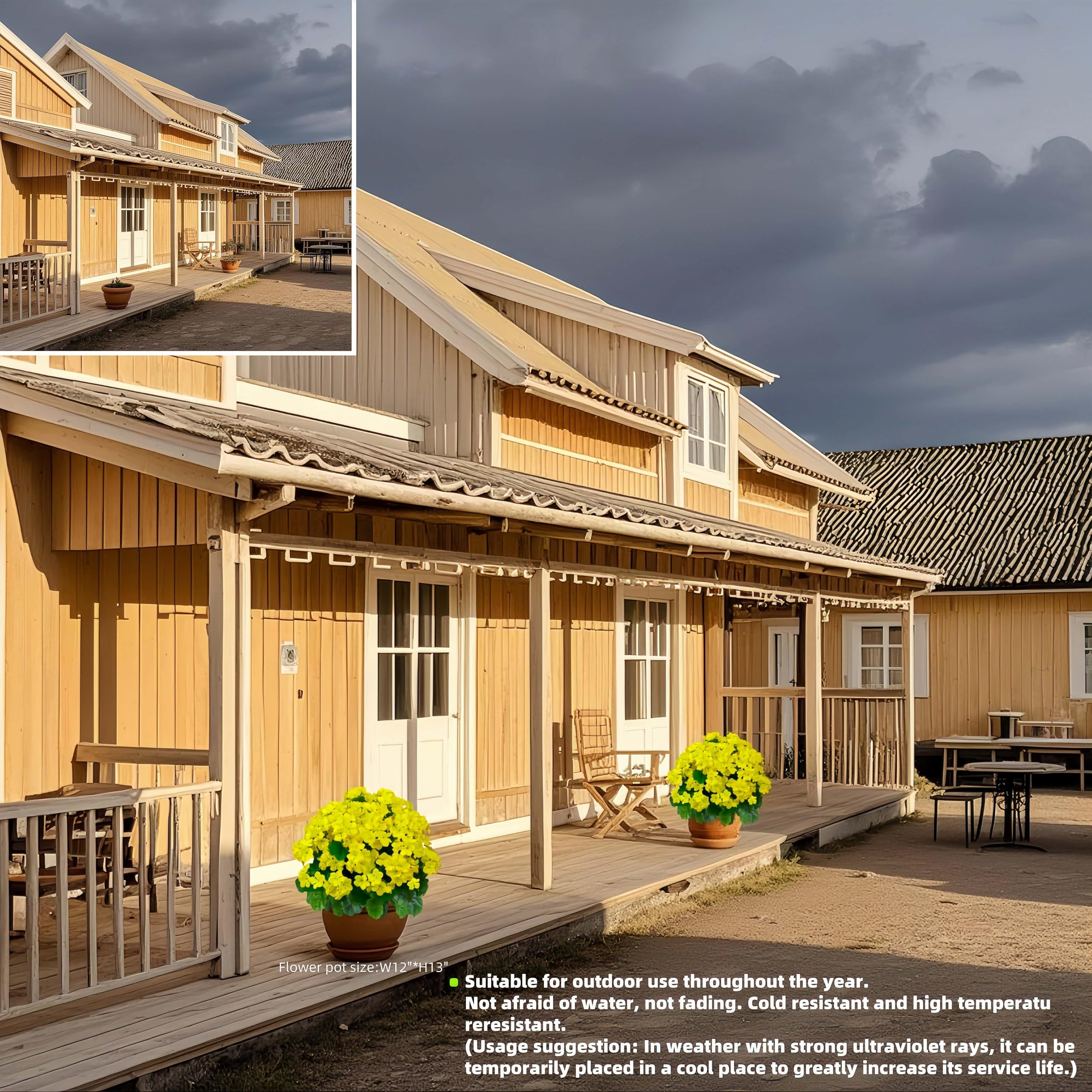 【UV Resistant】Featuring advanced UV resistance technology, our uv resistant artificial outdoor plants retain their vibrant colors even under prolonged sun exposure. This fade-resistant characteristic makes them an ideal choice for outdoor decorations, ensuring your garden, balcony, or yard always looks fresh and inviting.