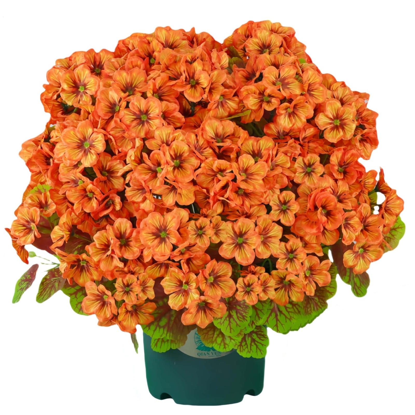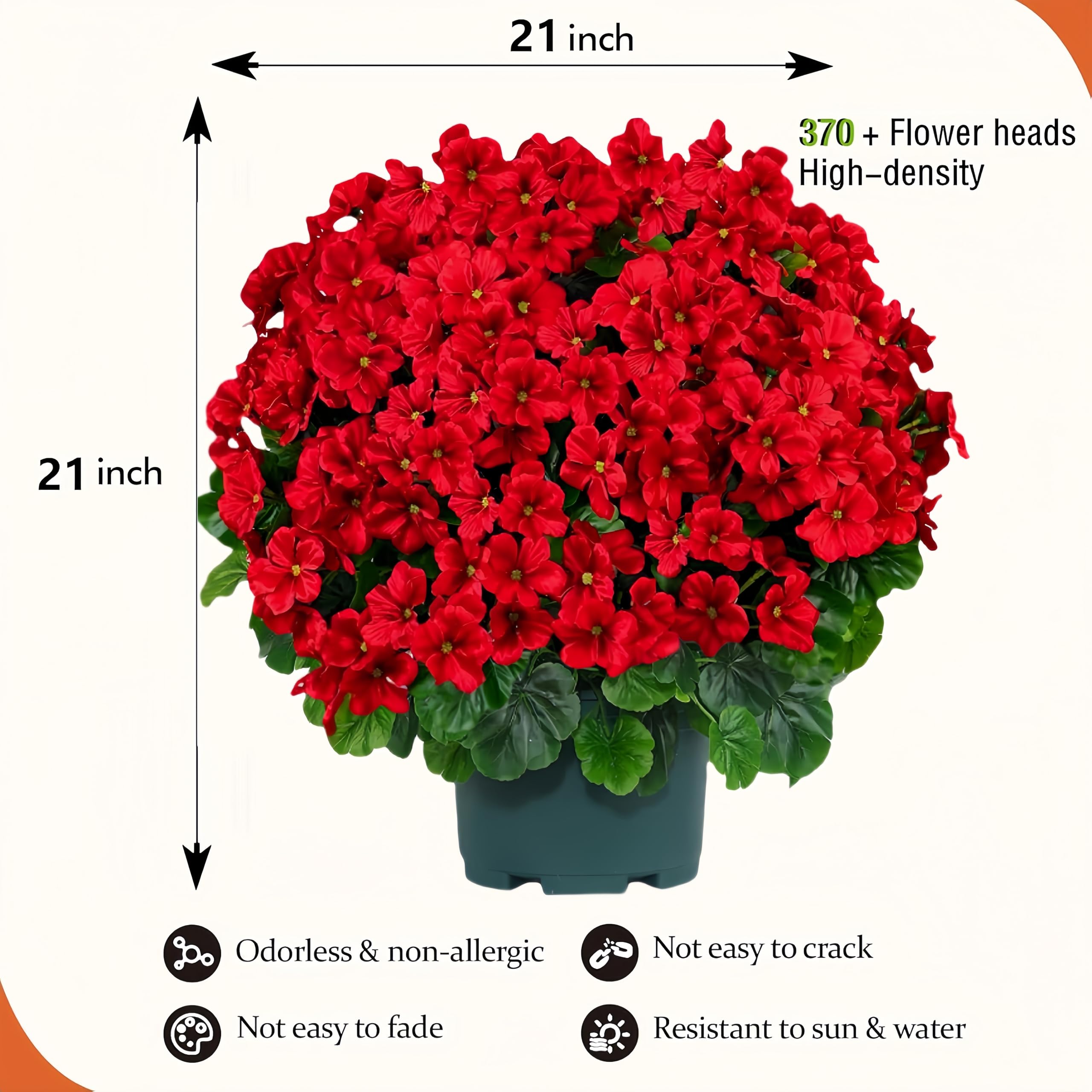 【Product Dimensions】 The arrangement stands about 21 inches tall from the base of its built-in pot—which measures roughly 7 inches wide by 6 inches high—to the tip of the blooms, and spreads a generous 21 inches across, packing more than 370 densely clustered flower heads for a lush, vibrant presence that still fits neatly into most 10- to 12-inch decorative planters