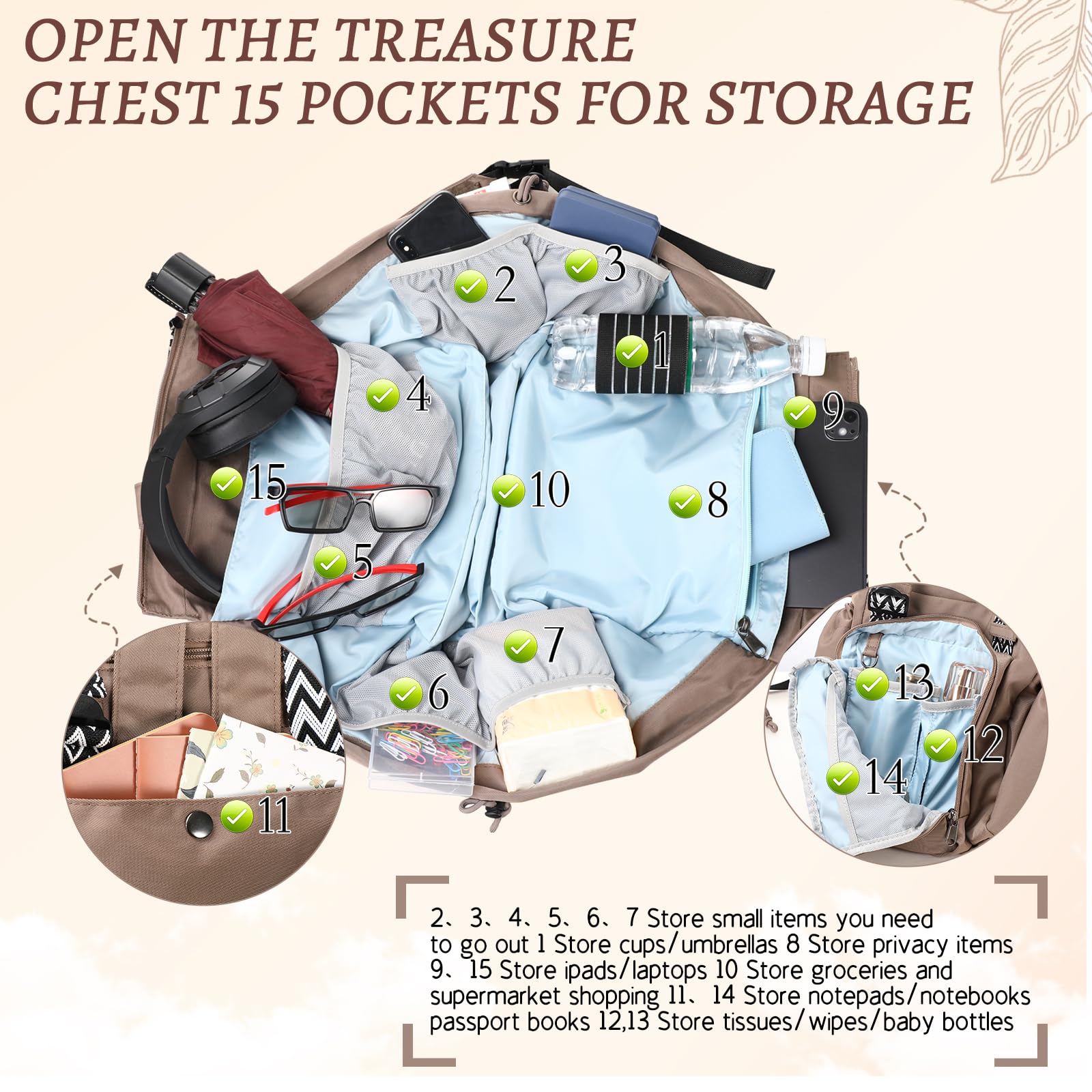 This bag features a huge capacity with 15 smartly designed pockets — perfect for travel or daily use.