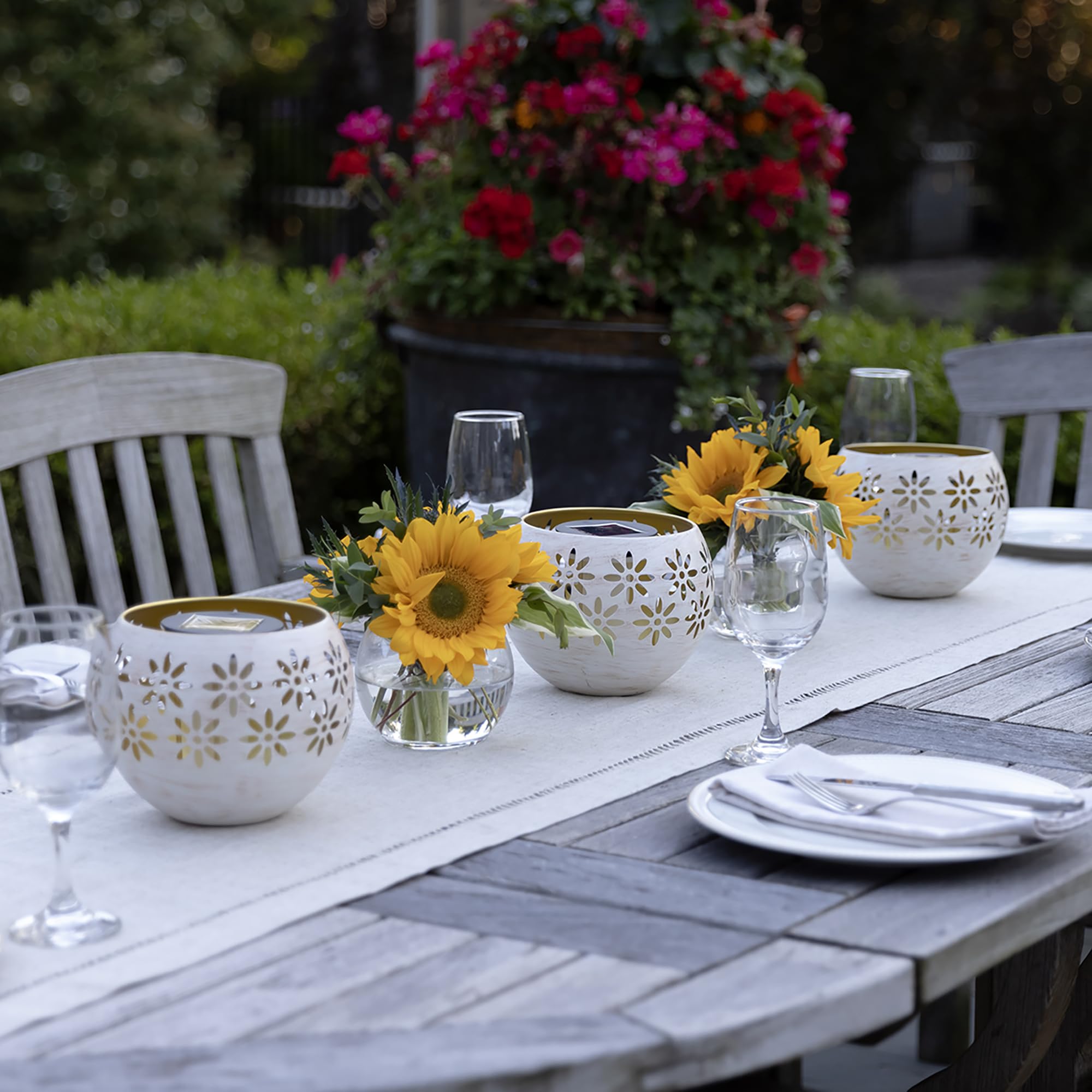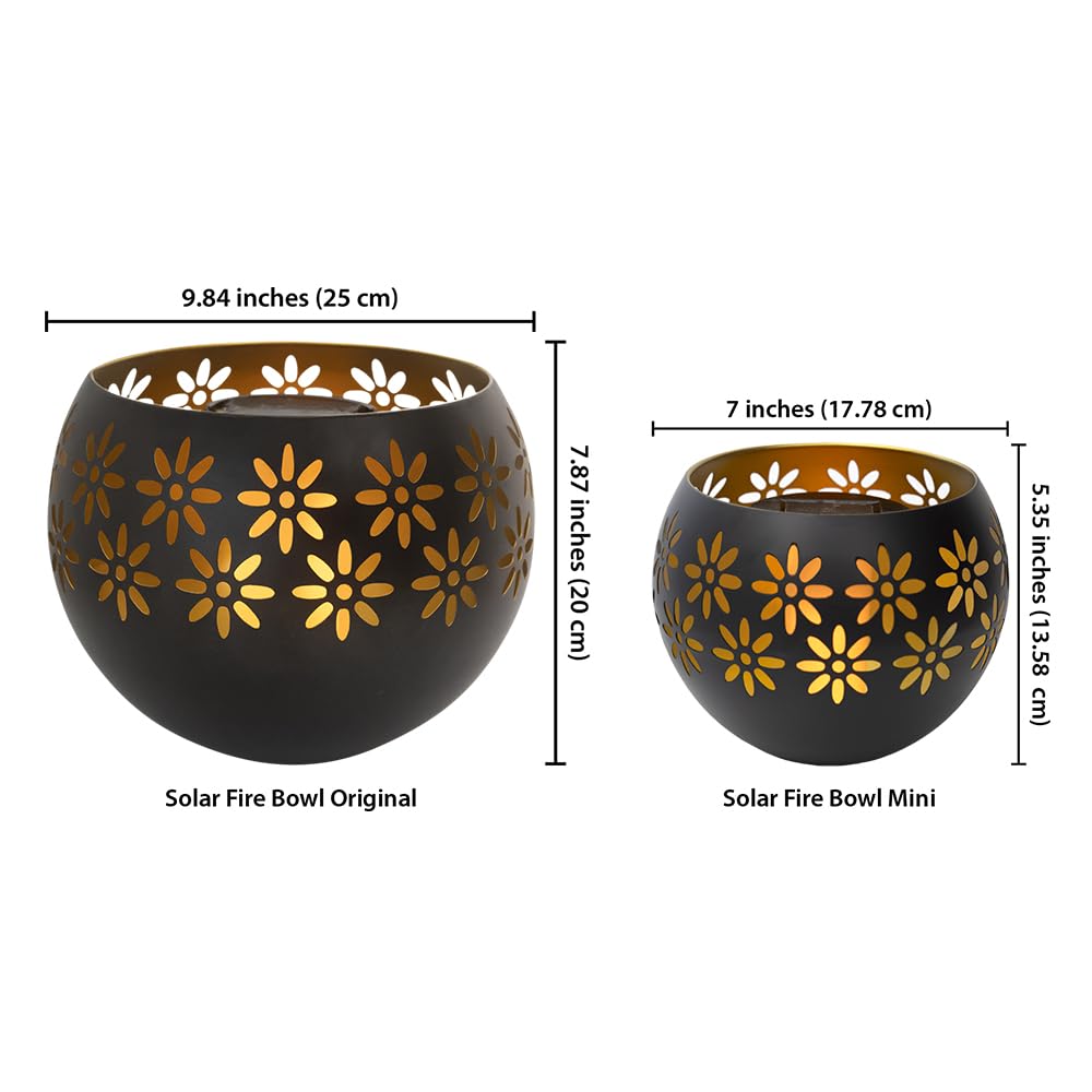9.84” Metal Decorative Bowl - The Solar Fire Bowl features a stylish metal design, adding a touch of sophistication to your outdoor garden decor while serving as a functional solar table lamp, lantern and garden decor.