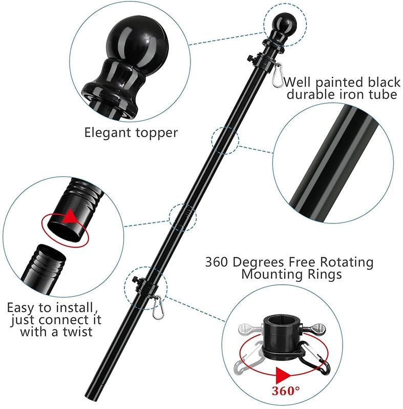 🚫 ANTI-TANGLE DESIGN – Features an anti-tangle ring to keep your flag flying freely! Made of 1-inch diameter stainless steel, it's rust-resistant, durable, and built to last.
