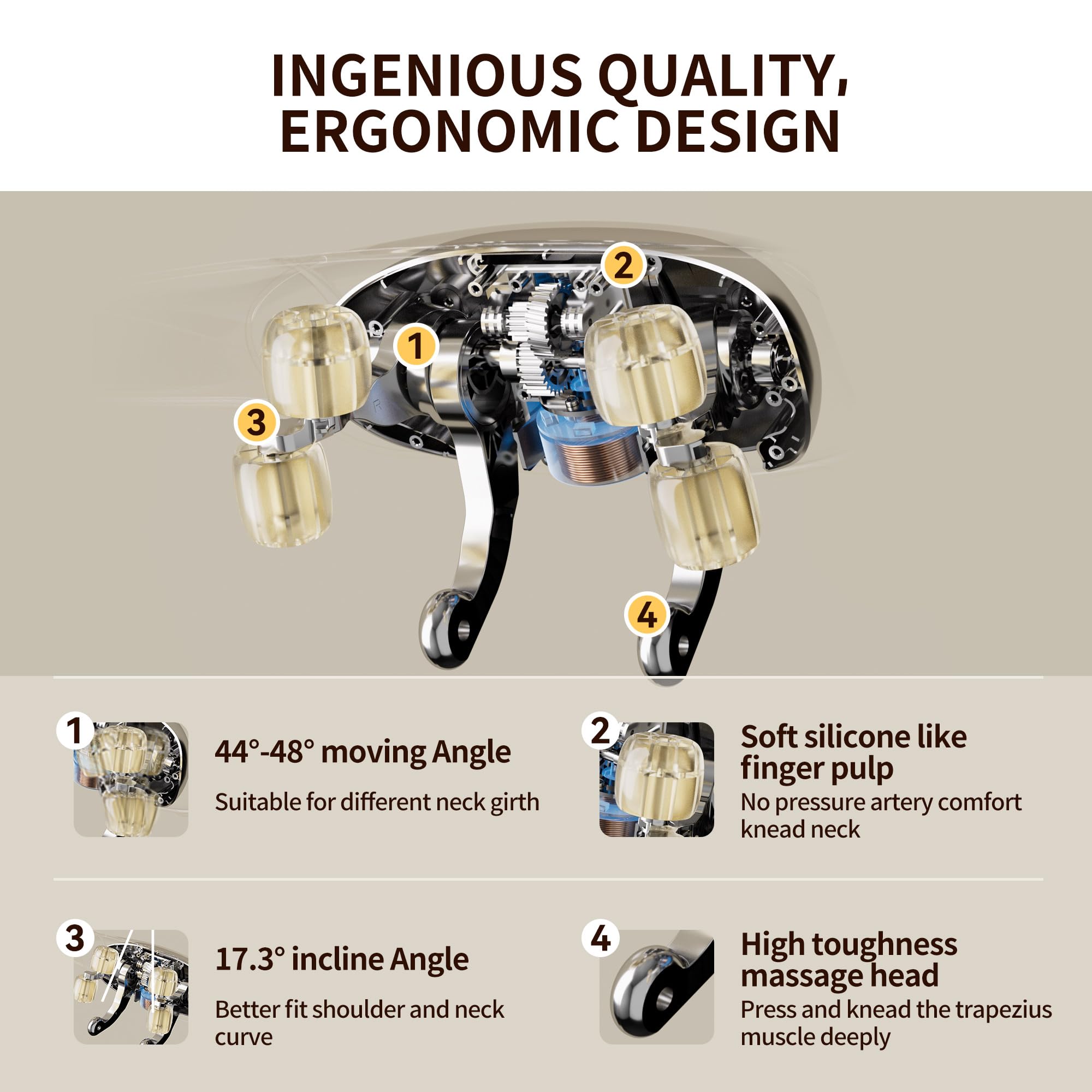 🔥 Soothing Heat Function – Experience a spa-like massage with two heat settings (104℉/111℉) to relax stiff muscles and enhance comfort. For safety, the massager automatically shuts off after 10 minutes, preventing overheating while you drift into relaxation.